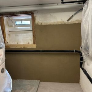 Nach einer Kellersanierung, der Putz trocknet hell auf.