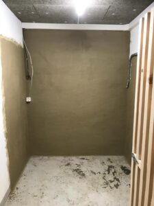 Schlussputz noch feucht, wird bei der Austrocknung hell.