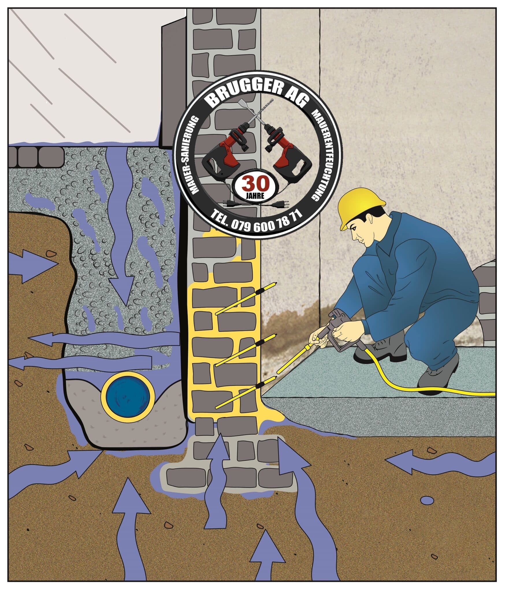 Wir sind Spezialisten und beschäftigen uns ausschliesslich mit der nachhaltigen Entfeuchtung von Mauerwerken, mit einer Garantieleistung von bis zu 10 Jahren. Dabei gilt: Kein Graben von aussen oder Verdecken von innen. Seit über 25 Jahren verpressen wir je nach Mauerwerk die bestbewährte Emulsion.